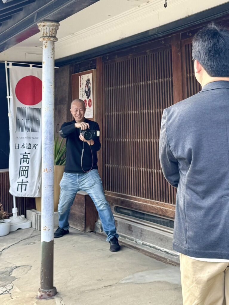 撮影はスタジオを出て山町筋の重要伝統的建造物群保存地区にて。